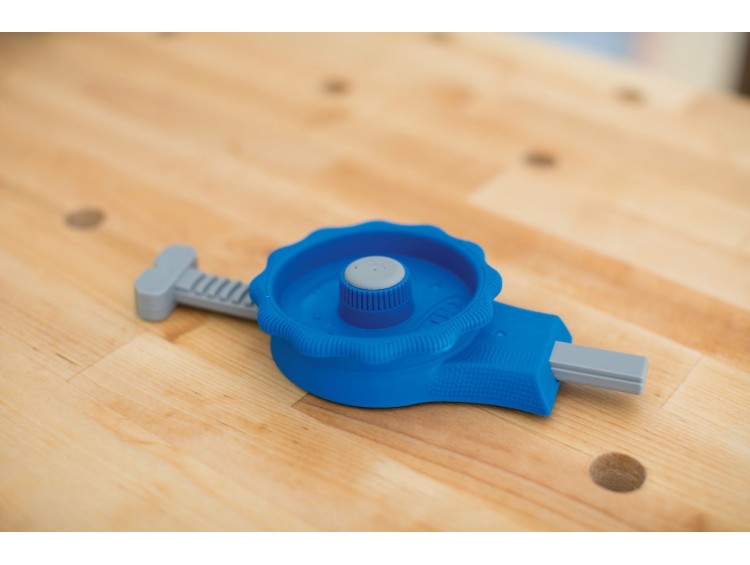 La prensa aplica hasta 150kg de fuerza de sujeción, y gira para sujetar desde cualquier ángulo.