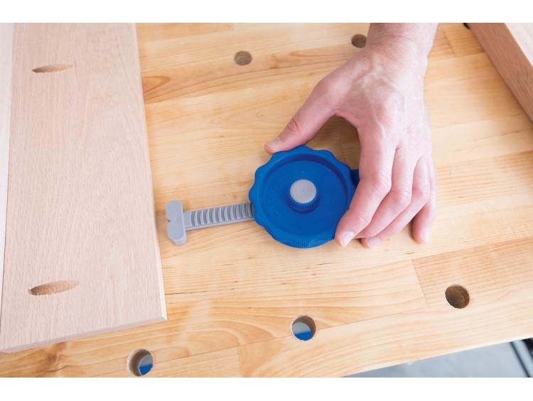 Al aplicar presión desde un costado y no desde arriba, la prensa en línea se mantiene fuera del camino mientras trabaja. Una clavija que encaja en cualquier orificio de 20mm de diámetro y mantiene la prensa en su lugar, por lo que la prensa horizontal permite obtener más de cualquier banco con orificios o cualquier superficie de trabajo donde pueda perforar orificios.