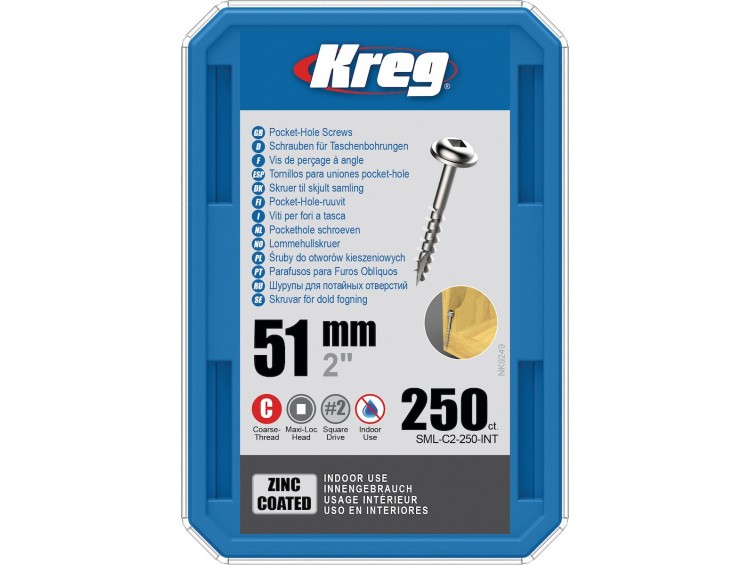 155x104x91mm Parafusos para sistema Pocket-Hole Parafuso Zinco (Maxi-Loc™) 51mm - 250pcs