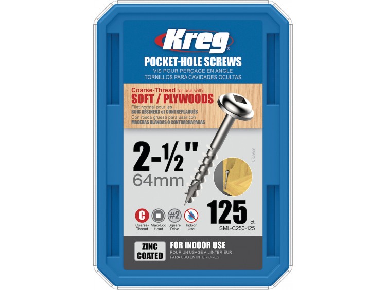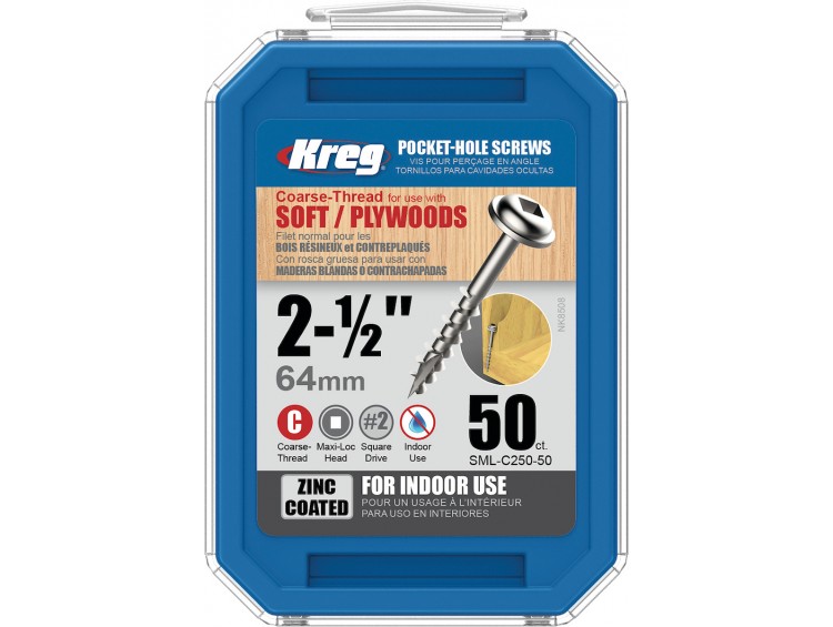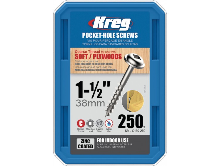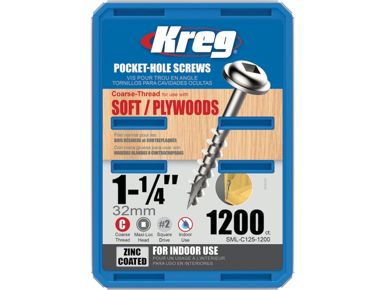 "Los tornillos de zinc Kreg son una buena opción para una amplia variedad de proyectos en interiores con exposición limitada a los elementos. Los tornillos de zinc brindan una protección adecuada contra la oxidación y sirven como una alternativa asequible a nuestras variedades de tornillos de acero inoxidable y Blue-Kote™ que brindan mayor protección.