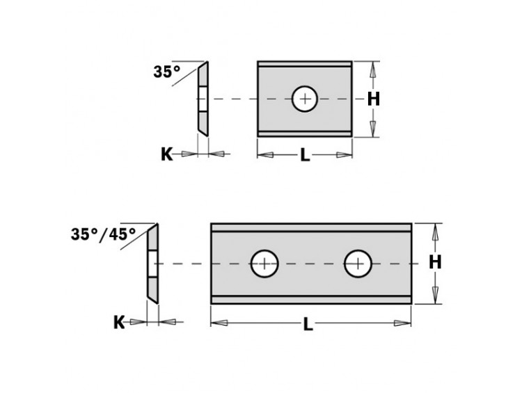 Las dimenciones en la tabla se refieren a L (largo) x H (altura) x K(espesor).