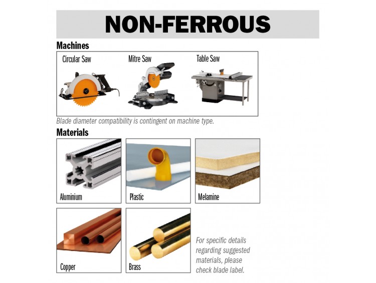 Máquinas: sierras ingletadoras simple o doble, sierras radiales. Se recomienda utilizar la sierra por encima de la pieza. Utilice la serie 296 para máquinas portátiles.