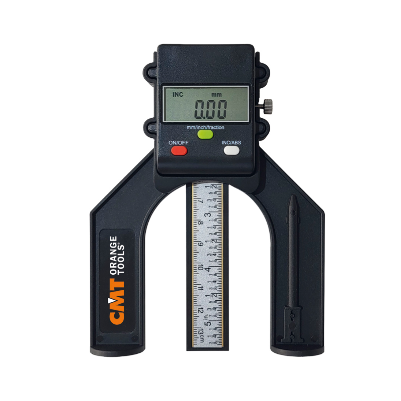 - Base com ímanes, para ajustar a profundidade de corte em mesas de tupia e ajuste das guias de corte.