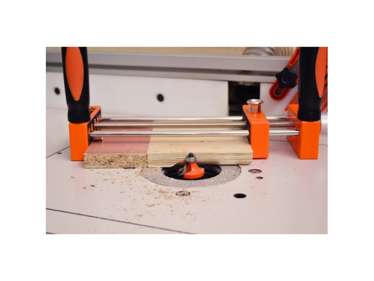 Garante uma estabilização segura das peças de trabalho mais pequenas durante todo o processo de fresagem. As pegas são confortáveis, antiderrapantes e mantêm os dedos e as mãos a uma distância segura da fresa, enquanto o revestimento antiderrapante no centro e na base do lado direito mantém a peça fixa e garante que ela não sai do sítio!