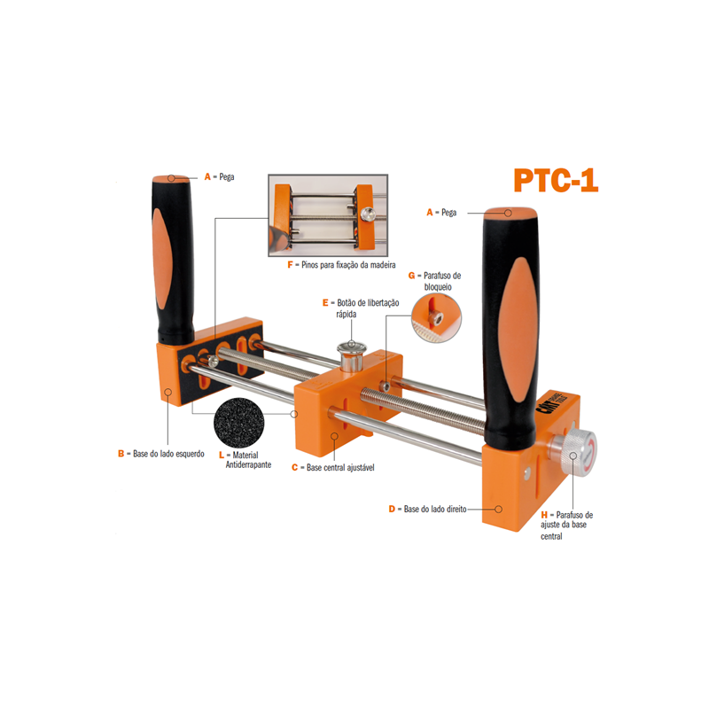 Totalmente ajustável e fácil de controlar, pode fixar pequenas peças até 216 mm (8-1/2") de largura.