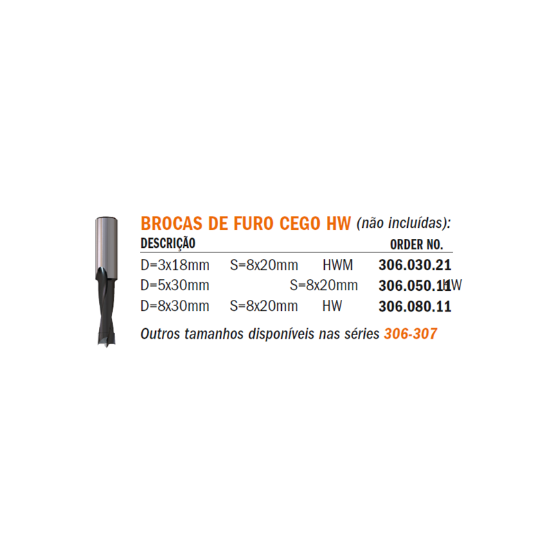 Para dobradiças:............................Ø3mm fpara parafusos de madeira Ø5mm para parafusos Euro