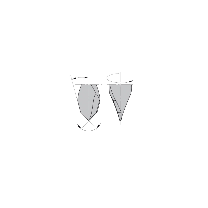 • A ponta exclusiva tem esporas curvas e retificadas negativamente para produzir furos excepcionalmente claros sem arestas ásperas. Ponto central equilibrado.
