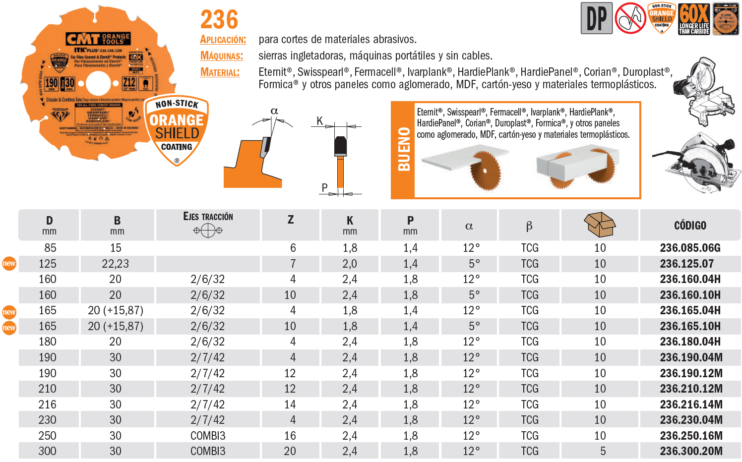 Referência: 236.216.14M Diâmetro (D): 216Ø de furo : 30 Furos satélites: 2/7/42 Número de dentes (Z): 14 Espessura do Dente (K): 2,4 Espessura do Corpo (P): 1,8 Ângulo de Corte (α): 12° Tipo de dente: TCG Sub categoria: Serra Circ. p/ corte outros materias 48h a 72h | 236.216.14M | 216 | 30 | 2/7/42 | 14 | 2,4 | 1,8 | 12° | TCG | Serra Circ. p/ corte outros materias | Available now Stock : 147 | 48h a 72h |
