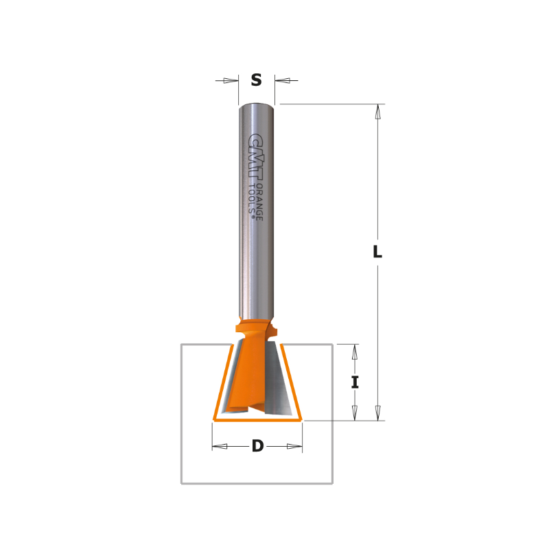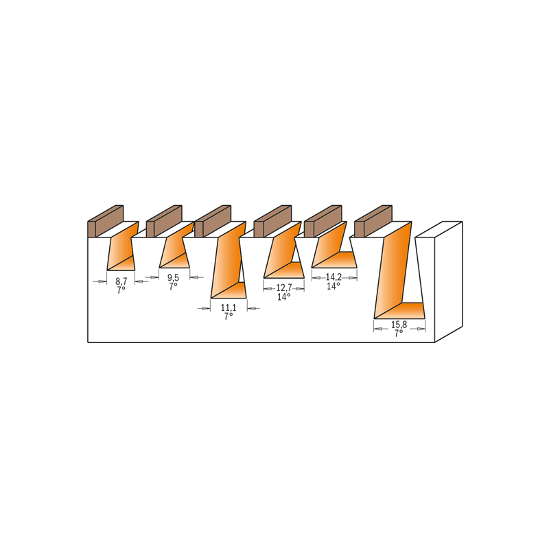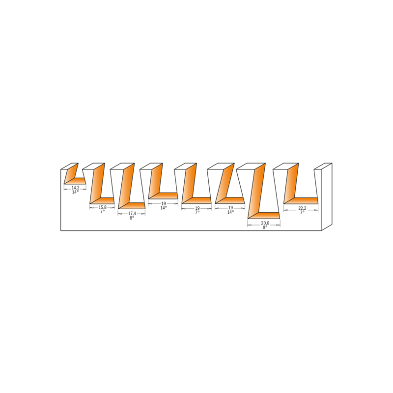 SUGESTÕES DE UTILIZAÇÃO: Recomendam-se duas passagens quando se usa a fresa "cauda de andorinha" com uma guia. Verifique se as uniões “cauda de andorinha” foram fresadas na totalidade e sem problemas antes de remover a peça de trabalho. Para uma fresagem ainda mais fácil, execute a primeira passagem com uma fresa reta.