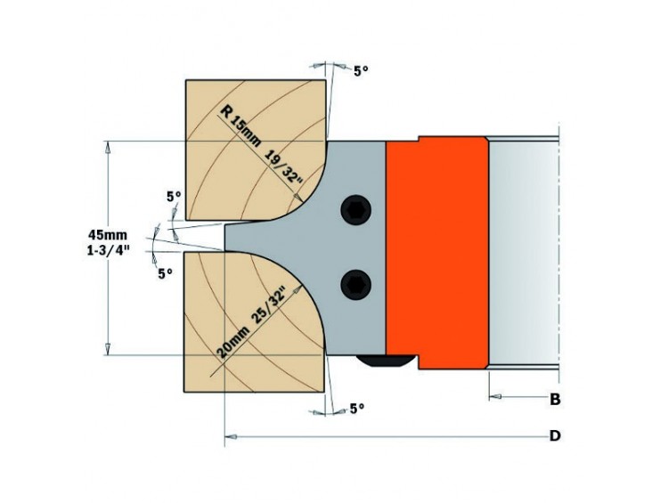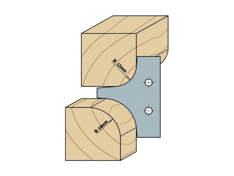 Porta-lâminas inovador que monta duas lâminas de corte diferentes, permitindo a realização de quatro perfis de raio côncavo. O Porta-lâminas é fornecido com lâminas de raio de 15 mm (19/32") e 20 mm (25/32"). Também estão disponíveis lâminas para raios côncavos de 12 mm (15/32") e 18 mm (23/32").